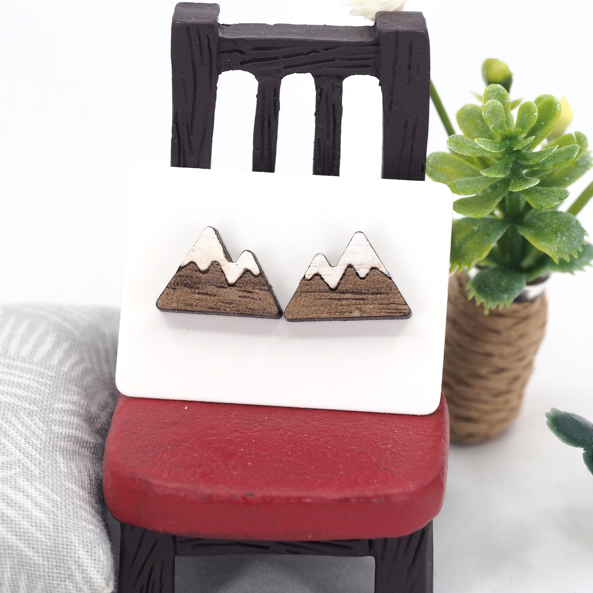 Carved from rich walnut wood, these Summit Studs bring the calm strength of the mountains to your everyday look—simple, natural, and effortlessly adventurous.