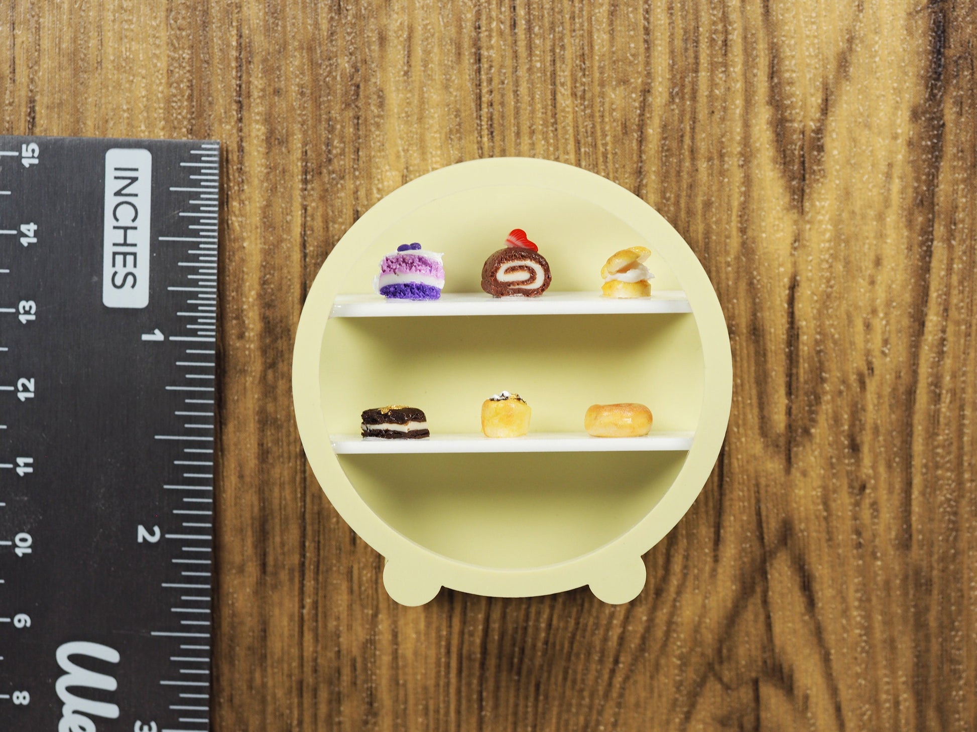 Miniature dessert stand magnet with mini desserts. Items are permanently glued to the magnet.